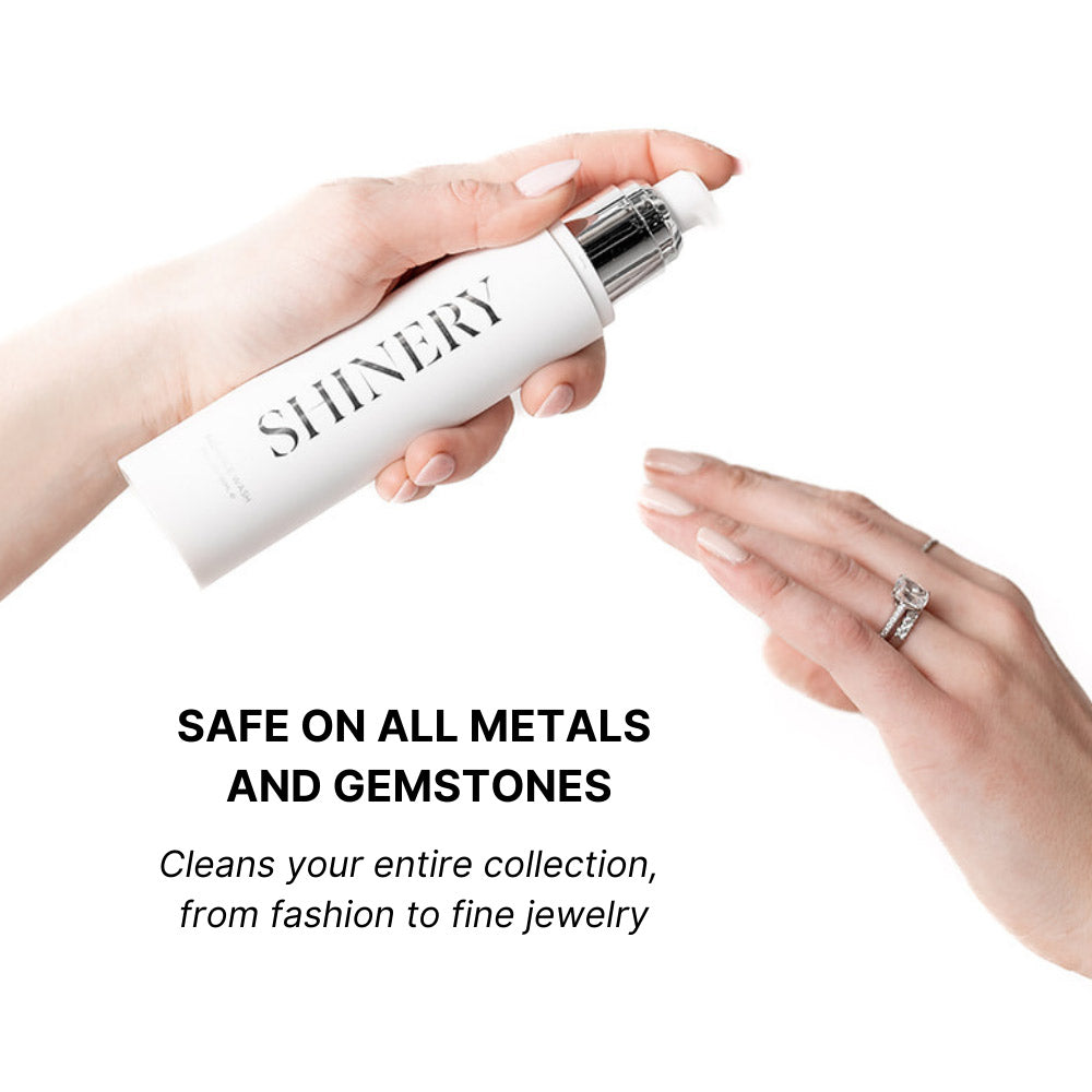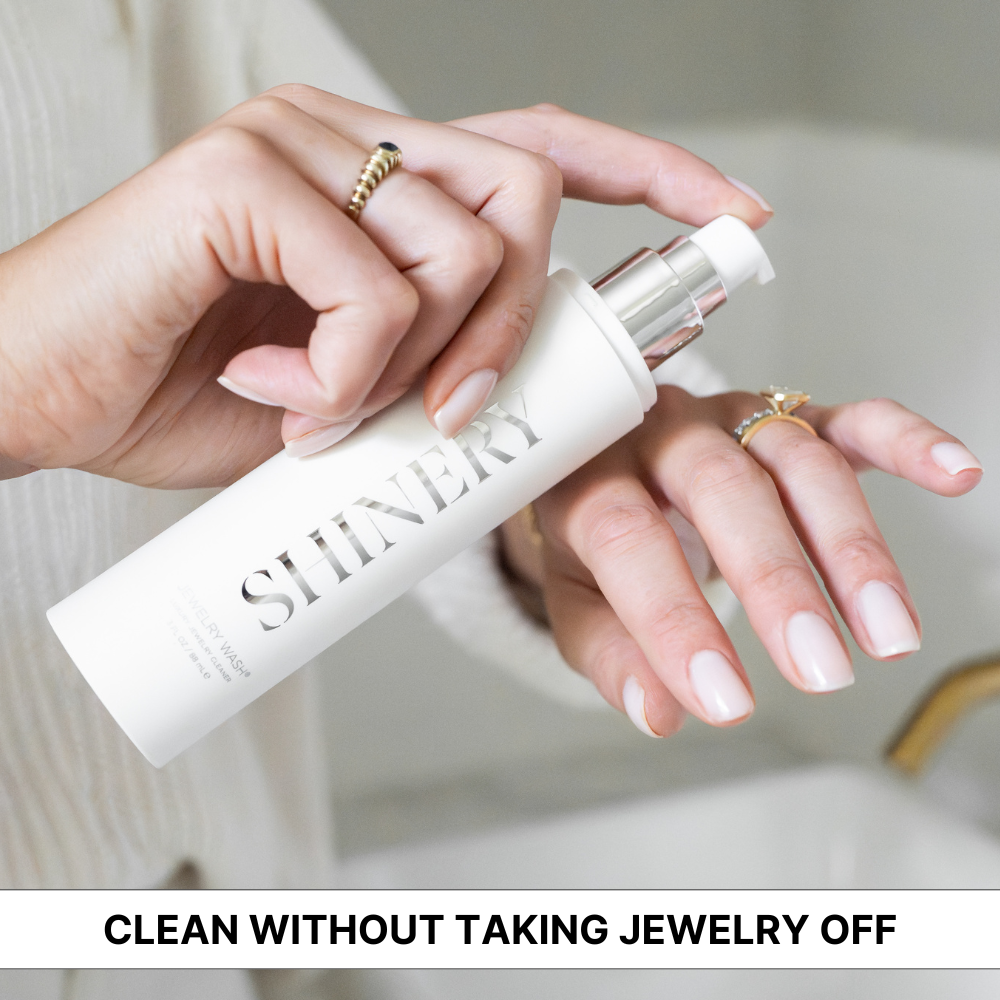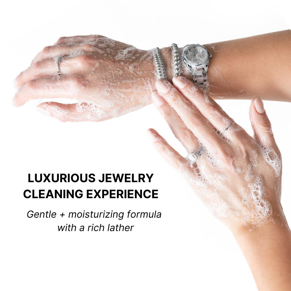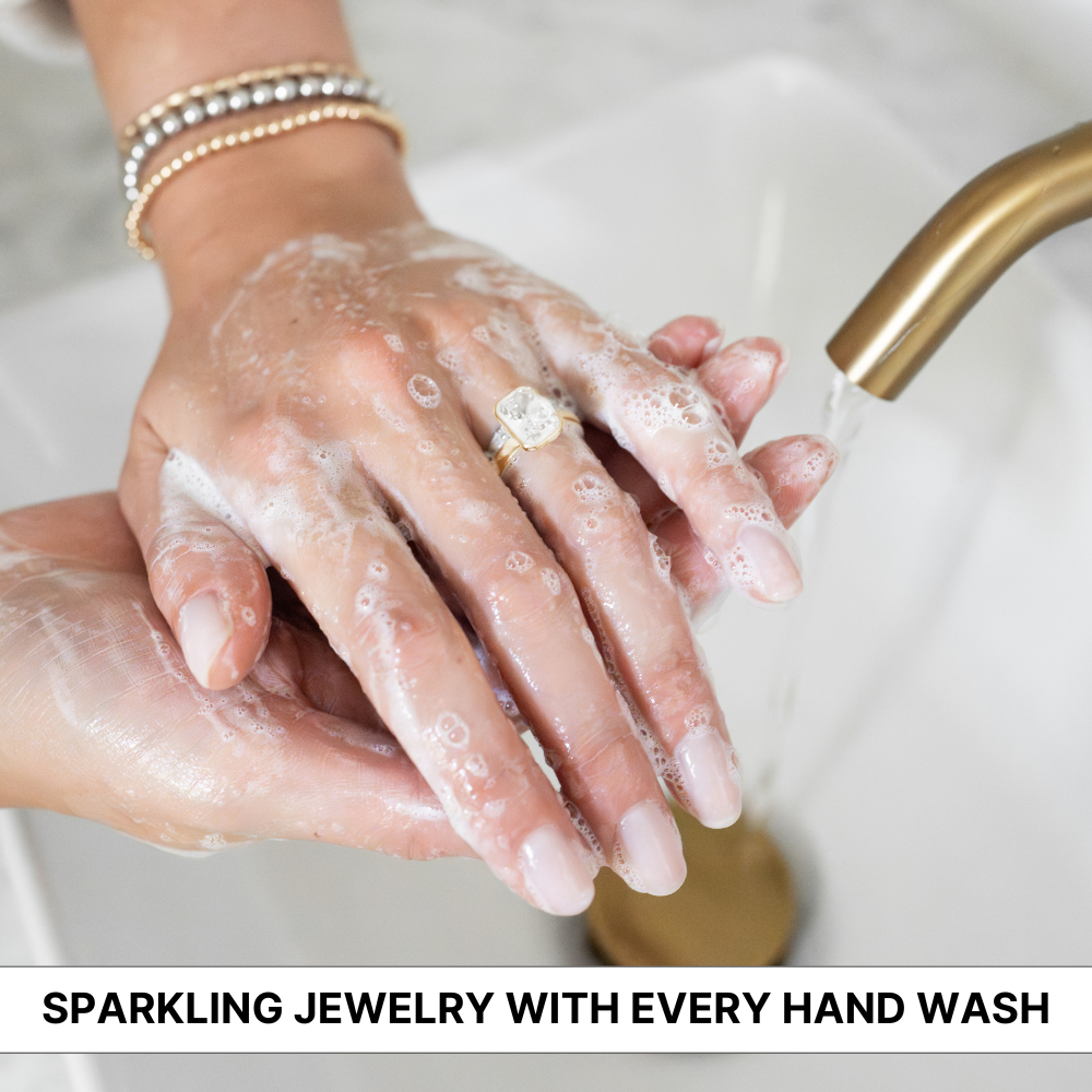 The Jewelry Wash® transforms handwashing into jewelry care, cleansing the pieces you wear with a luxurious, skin-loving formula that restores shine in seconds. No soaking, no machines, no harsh chemicals - just clean, radiant jewelry every time you wash your hands.